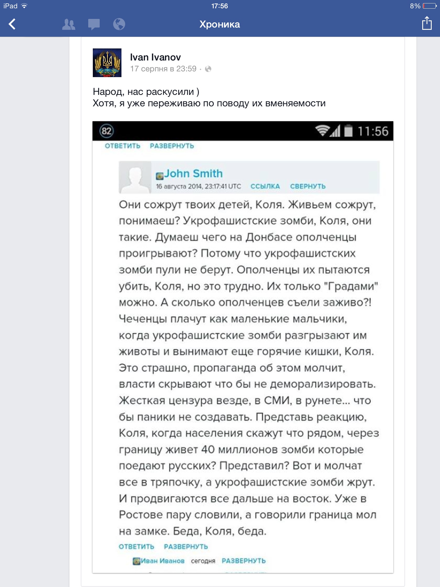 " Привет. Не пишу в коментариях, т.к. там это замылится и потеряет весь смысл. То что случилось на этой неделе действительно открыло многим глаза. Я не говорю про себя - я в происходящем в Украине с декабря и знаю где правда. Я говорю в первую очередь про Псков и Питер. 76-я дивизия - это гордость Пскова. Это тоже самое как 79-я и 95-е аэромобильные для Украинцев. У меня есть друзья в Пскове и последние полгода - я не разговаривал с ними, понимая что это бесполезное занятие. Любой разговор заканчивался - ну и вали к своему Бандере или что нибудь в этом духе. В понедельник мне позвонил старый друг, он специально отстранился от происходящего и сидит дома, копит арсенал на случай гражданской войны. Я его в принципе понимаю. Говорит - а ты знаешь что в Пскове творится. Понятно - что я уже понимал о том, что там происходит. Сейчас Псков и Псковская область переваривают случившееся. Причем позиция из знака минус, поменялась на знак плюс. Когда я позвонил друзьям - тем самым, с кем не общался полгода - они чуть ли не кричали в трубку, что Путин гавно. По факту - ребята которых расстреляли в Луганске даже не знали за каким они туда попали. Им и их родным сказали - едете на учения в Ростов и точка. Сейчас люди поняли как обманывали их все это время, как обманули сейчас. Причем если бы их родные погибли во время исполнения боевого долга - семьи бы хоть что-то получили. А власти продолжают врать, говорят о том, что никаких официальных приказов не было, что 76-я ушла в самоволку на Украину. Естественно этому никто и никогда уже не поверит. По факту вышло что из-за одного ополоумевшего правителя гибнут люди как у вас, так и у нас. Причем гибнут ни за что. Никакого долга родине, никаких приказов - просто парней выкинули в войну и сказали что идут ученья. Вот такая история. Будет желание опубликовать - я не против. Для меня главное - мир в Украине и чтобы она осталась такой - к какой я привык и куда я приезжал всегда как к себе домой