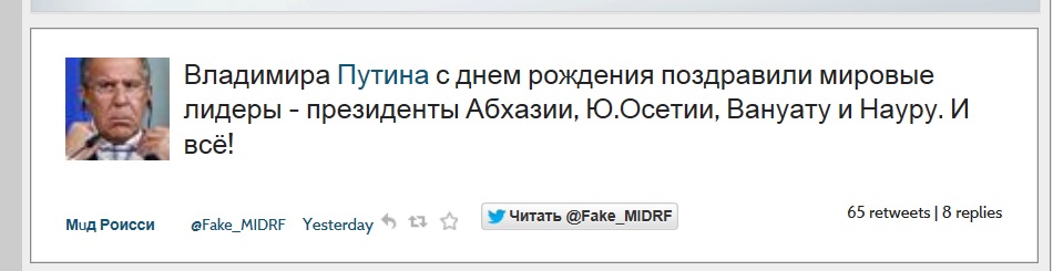 Сигналкин писал(а):Nik писал(а):Впервые Хуйла с днем рожденья не поздравил ни один мировой лидер