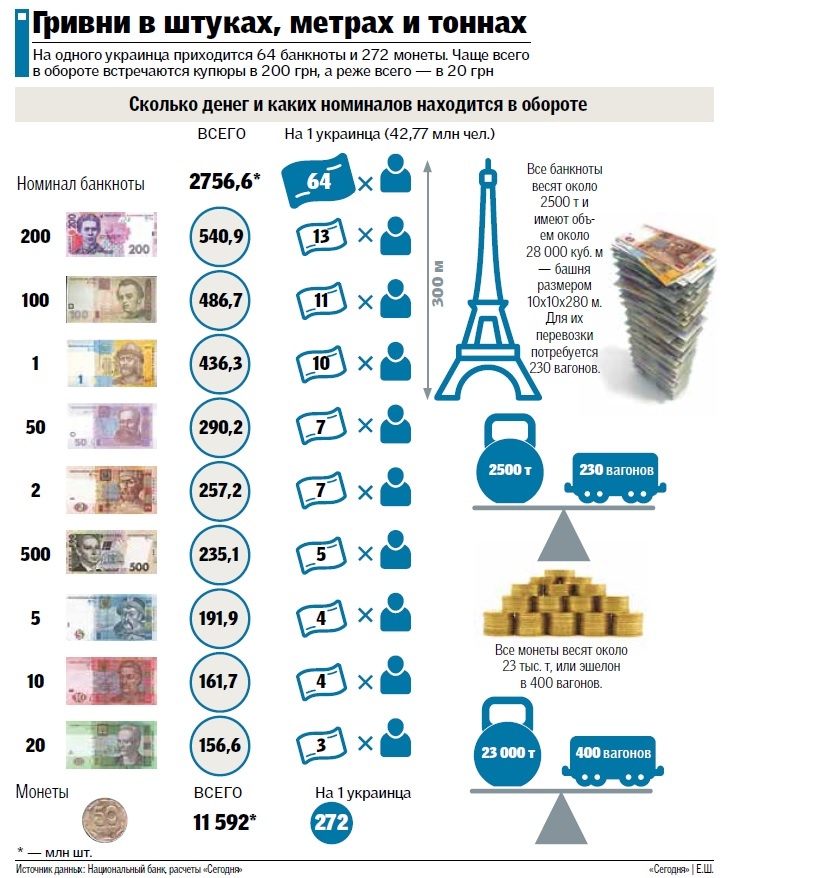 В карманах украинцев наличных за год стало меньше на 3 млрд грн: по информации НБУ, на 1 января 2016 г. в обиходе народа было купюр и копеек на сумму 308,3 млрд грн (монетами — 1,9 млрд грн). Для сравнения: в 2015-м обращалось 305,1 млрд грн, а в 2014-м — 262 млрд.