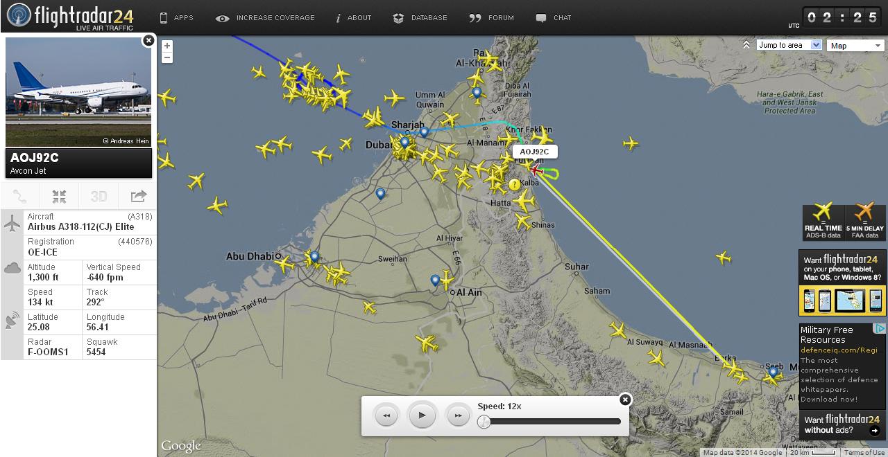 Борт с президентскими позывными #AOJ92C сел в ОАЭ около 04:30 в субботу,
