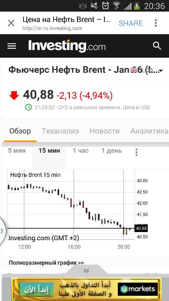Пока картинку вставлял, цена дошла до 40,55, упав за сегодня на $1,30.