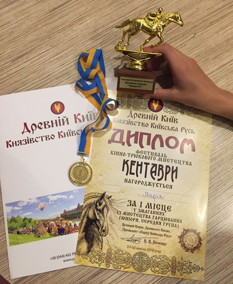 - Первые успехи в конном спорте. Еще и денежный приз получили. Это в свободное время от художественной гимнастики, которого практически не остается (занятия 6 дней в неделю по 3-4 часа). А еще мы рисуем, лепим, учим итальянский язык и т.д.... -