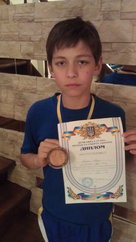 Поспішаю поділитися приємноє новиною. Мій малий Яким здобув бронзову нагороду в командному заліку на Чемпіонаті України з сучасного п'ятиборства серед юнаків у м. Львові. 100 метрів вільним стилем на великій воді(50-ти метровий басейн) - 1,15'62'' ; 1 км біг - 3,46. Присвоєний 3 дорослий разряд.