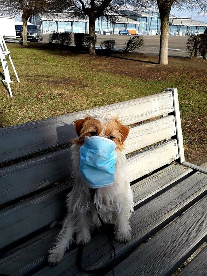 В сети появились фото служебных пограничных собак в аэропорту «Борисполь» в медицинских масках. Очевидно, таким образом животных подготовили к появлению коронавируса в нашей стране.