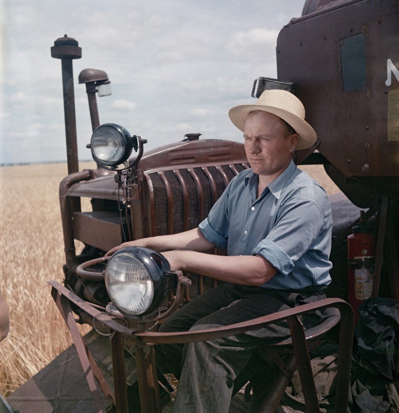 Квинтэссенция трудового счастья — ехать по солнечному полю на комбайне, с вымпелами в руках: