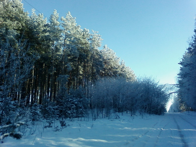 . Дом отапливается настоящей печкой, поэтому тепло и непередаваемый уютный "хатний" аромат обеспечен. Повезло с погодой - мороз, снег, солнце, луна создали такие декорации, что куда там киношникам браться. Снег выпал настолько пушистый и легкий, что с веток сдувался и летал как пух. При подметании веранды приходилось орудовать веником очень аккуратно, а то пушинки взлетали в воздух и опять укладывались на пол. При солнечном и лунном освещении все пространство играло бриллиантовыми отблесками снежных кристалликов - как в кино прямо. Аж мороз по коже от невероятности зрелища. Ночью при луне - готовый пейзаж для "Вечеров ну хуторе близ Диканьки". Днем выехали в лес - дорогу перебегал здоровенный лось, потом стайка косуль потрусила перед носом белыми попками. По хрустящему снегу целая книга звериных следов - от беличьих и до кабаньих. За три дня нагулялись и надышались вволю. Ну и, конечно, горячий глинтвейн на морозном воздухе, шашлычок, фирменная семга на шпинате под брют, созерцание живого огня в печке и тому подобные приятные развлечения. Для себя решили, что при такой погоде подобный отдых лучше турций и египтов. Душа очистилась, тело отдохнуло.