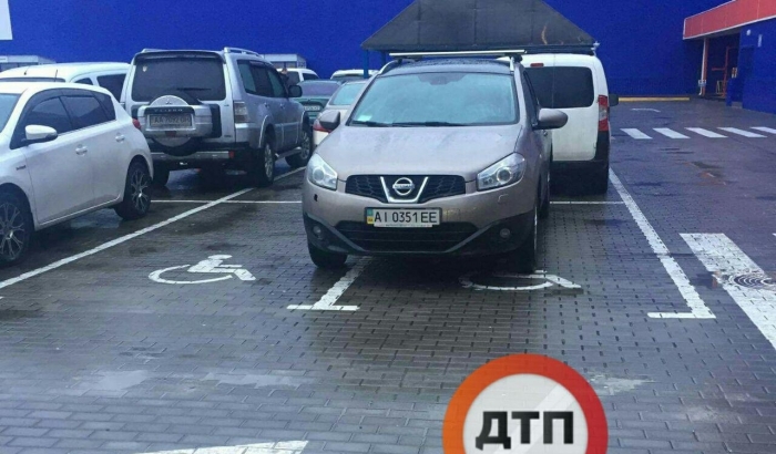 Водій Nissan припаркував автомобіль одразу на двох місцях парковки для людей з обмеженими можливостями.