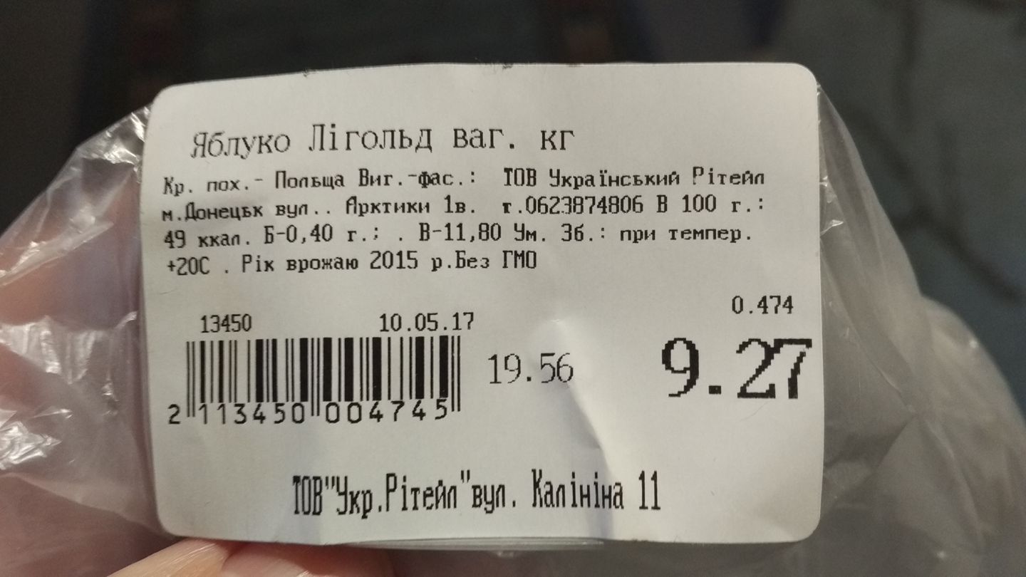 А кидалово не в тому, що вони продаються (може прострочені), я не знаю законів, скільки можна зберігати яблука, і не в тому, що ці яблука мабуть складаються із усієї таблиці хімікатів, а в тому, що про це можна взнати лише уважно прочитавши чек після оплати, чого звичайно не робить подавляюча маса покупців.