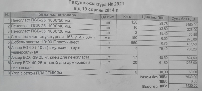 Ниже фотка счета. Плюс в другом месте брался нижний профиль на 720 грн 40 метров. Плюс доставка.
