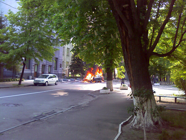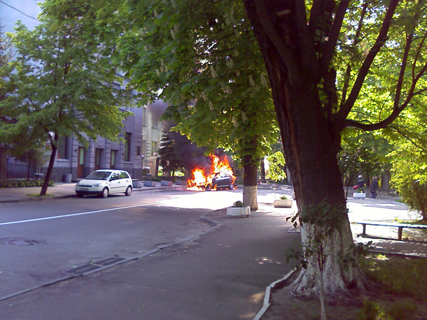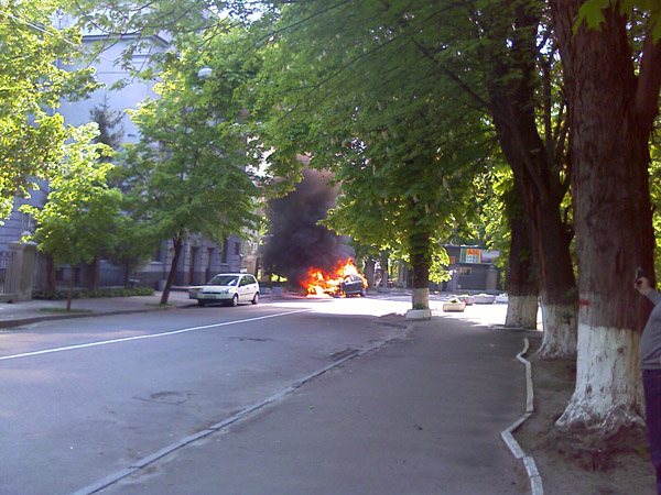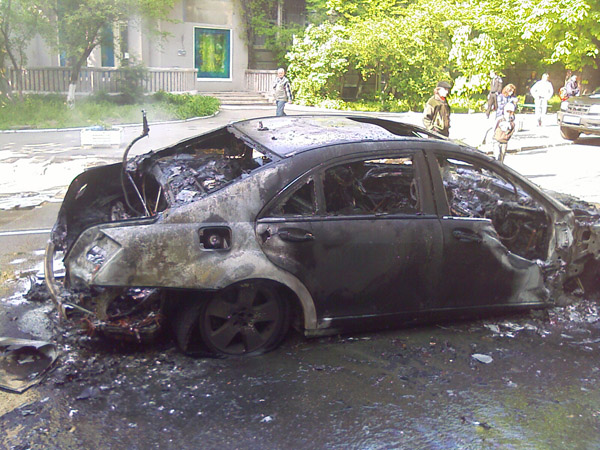 Сижу в офисе, звонок с проходной,-горит машина. Выбежал в метрах 10 от моей горит мерс.