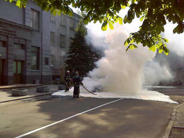 Пол часа назад на ул. Богомольца сгорел мерседес.