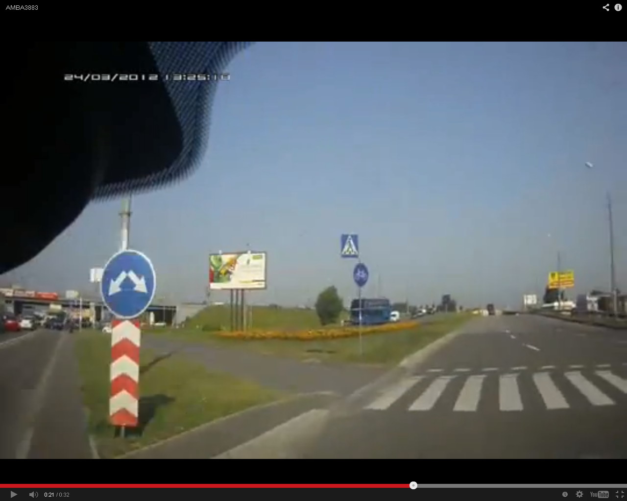 Микроавтобус явно и уверенно ехал на пешеходную дорожку, бордюр там очень низкий поэтому скорость можно не сбрасывать.