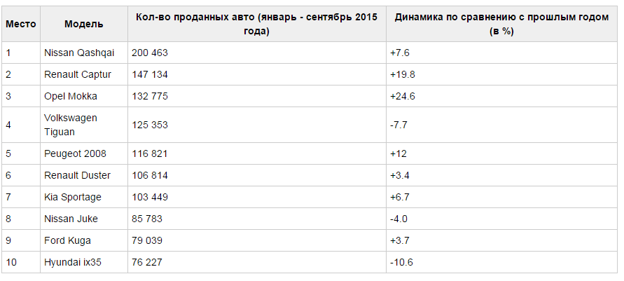 Стабильно в 10-ке самых продаваемых моделей, по итогам 2015 года на крупнейших рынках Европы: Германия, Великобритания, Франция, Италия, Испания: