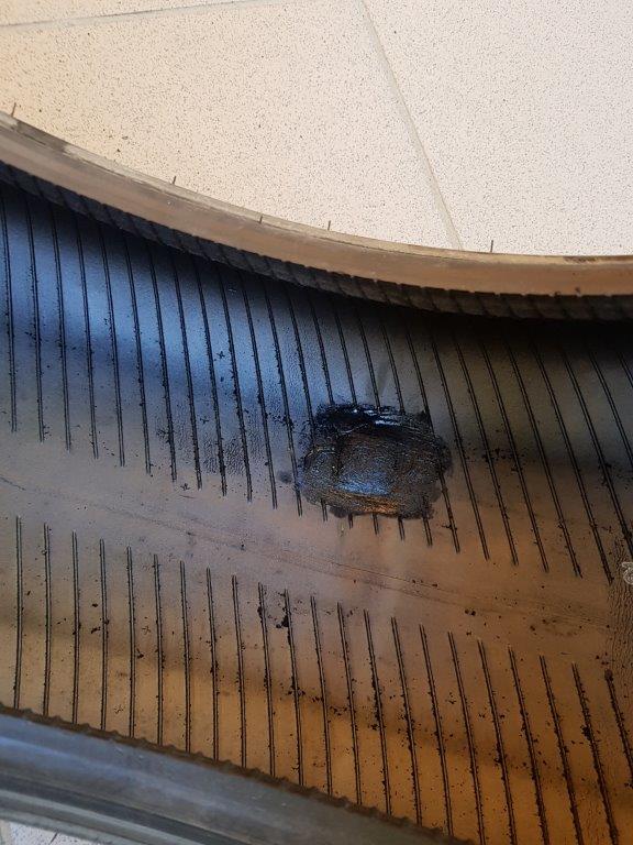 На одной шине обычный прокол. Поремонтирован, проблем с ним нет.
