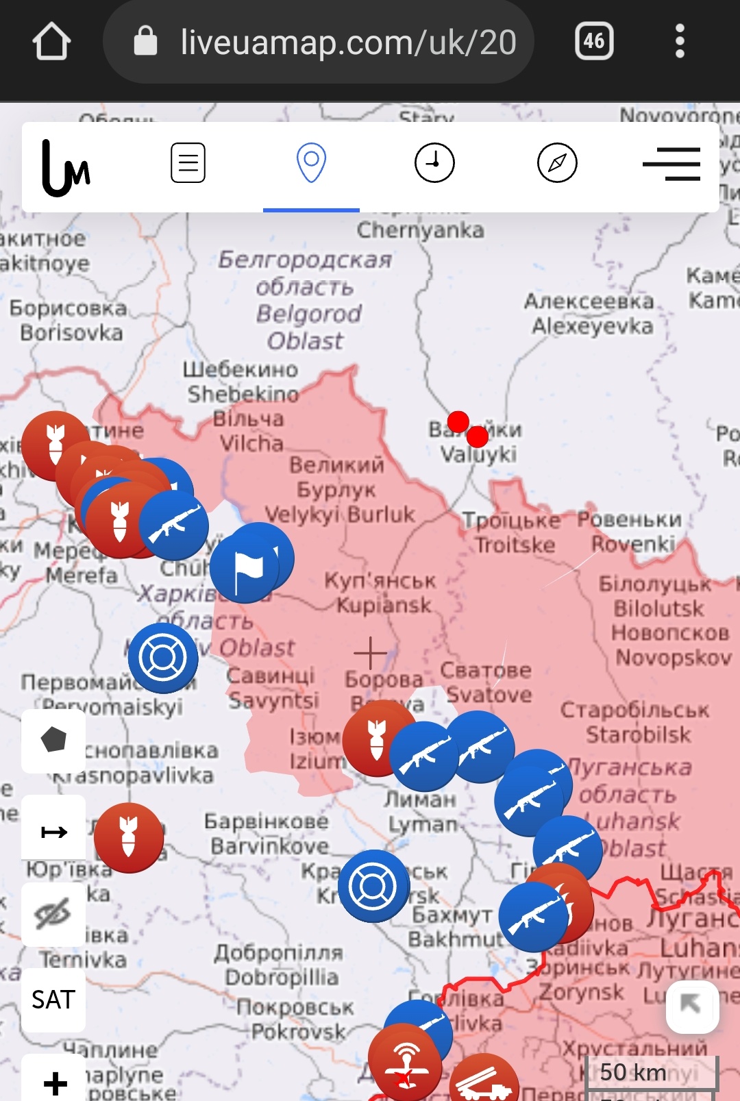 Судячи по синім піктограммкам на https://liveuamap.com/uk , наші перейшли в наступ і вже відвоювали кілька сіл у Харківській та Луганській областях. Тримаємо кулаки.