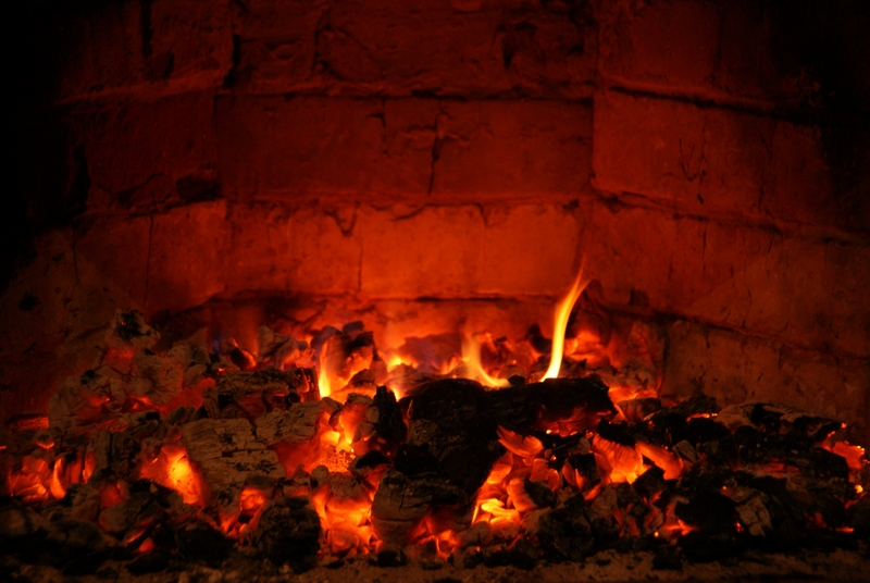В смысле над углями.