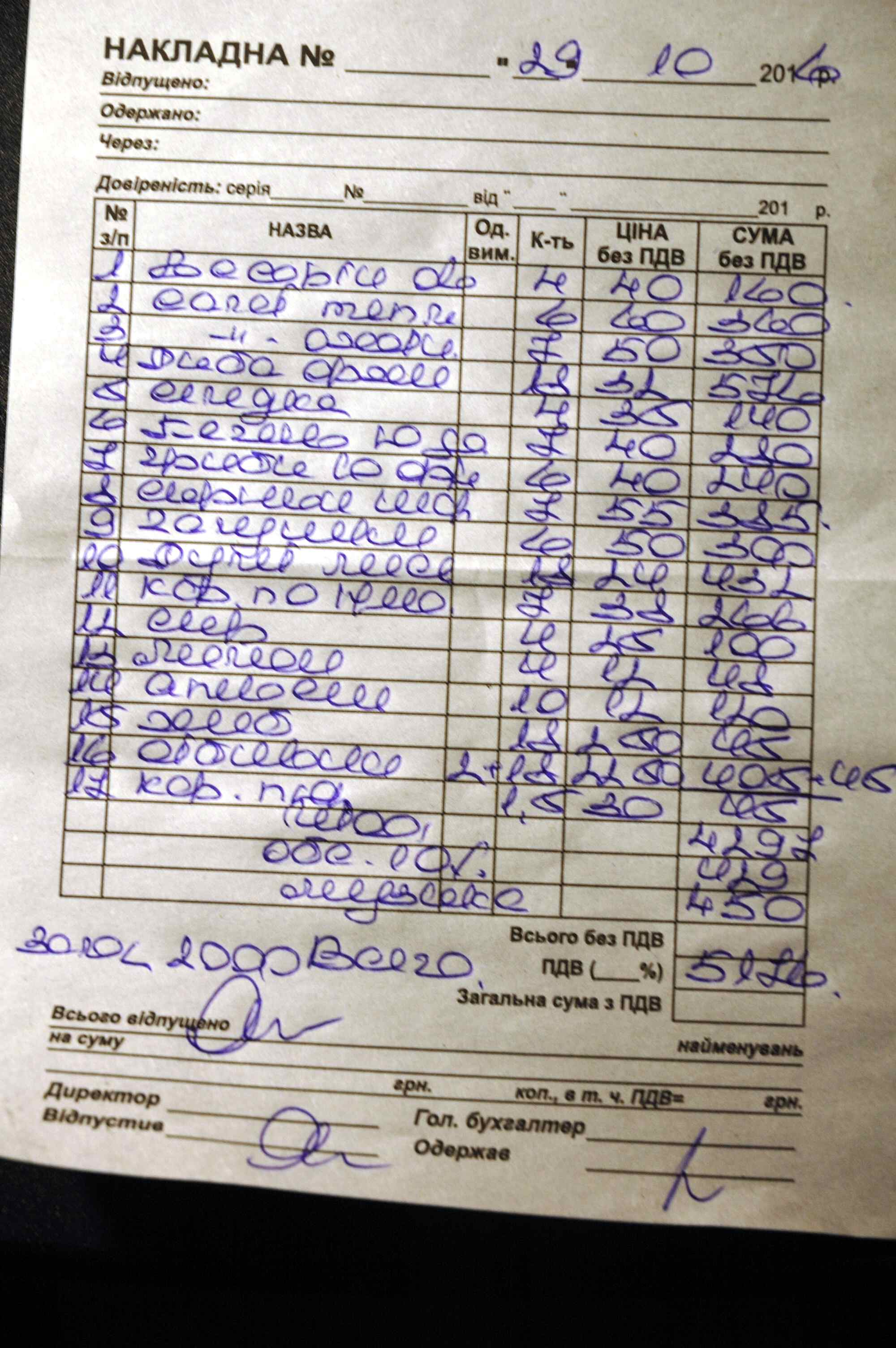 Ниже накладная.