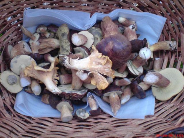 Грибов набрали по 1-2 килограмм каждый, лукошек у нас не было поэтому меряю в кг. В основном красивые такие темные польские, они же моховики.