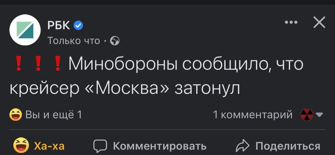 При этом крейсер Мацква стал знаковым событием. Даже самые упоротые ватаны начинают подозревать что "патерь нет" откровенный звиздеж.