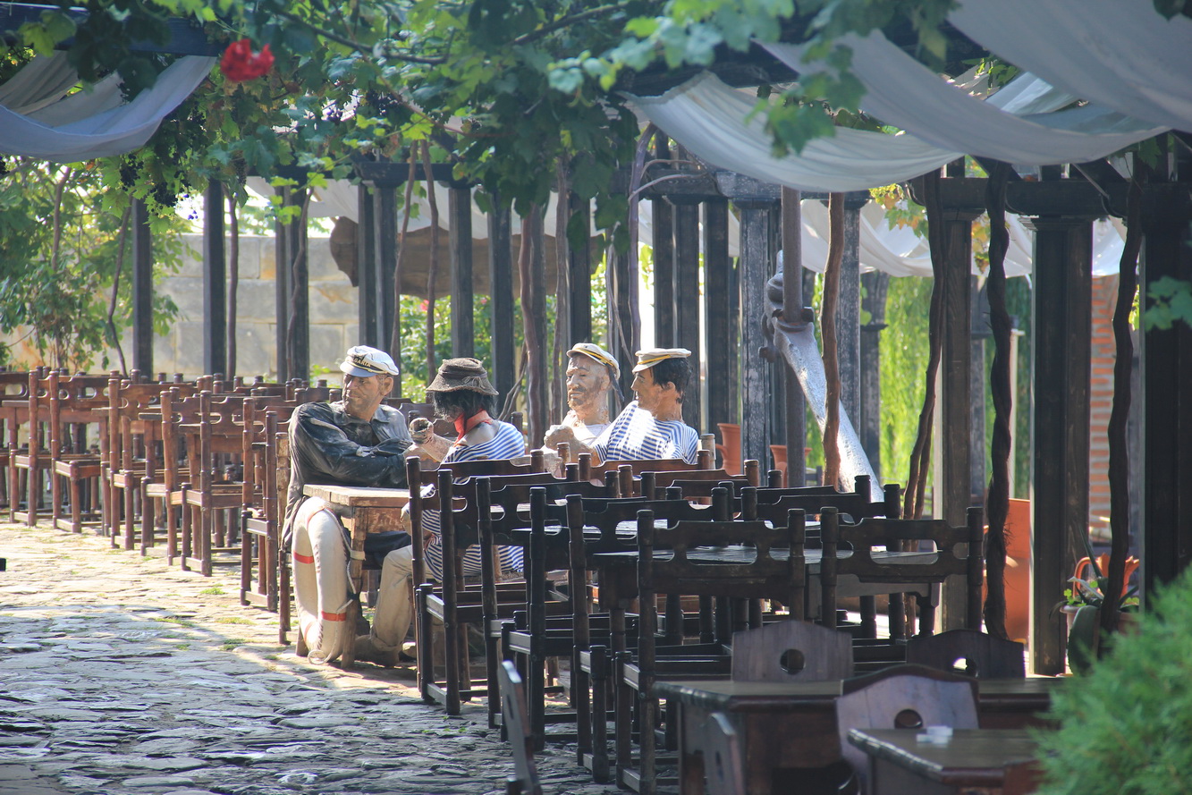 После хорошей прогулки и детского сна снова на пляж. Поужинать решили в ресторане. Предварительные поиски в интернете привели нас в ресторан “Александр”, по адресу Несебр, ул. "Св. Св. Кирил и Методий", № 26. Как пройти: если ехать из СБ на автобусе в Несебр, то нужно выйти на второй остановке в Несебре, и подняться вверх 1-2 квартала (по левой стороне 1, по правой 2) до улицы “Св. Св. Кирила и Методия”, повернуть направо и пройти 1.5 квартала, по правой стороне будет этот ресторанчик. Зная что порции будут большими заказали себе по одной порции салата на двоих, одной порции жареного картофеля с брынзой на двоих, фирменное блюдо тоже одно на двоих, плюс пиво, детям взяли по одной порции картофельного пюре с котлетой. Дима с Аней заказали себе на двоих примерно в том же объеме, что и мы, плюс порцию картофельного пюре ребенку. Еду готовили достаточно быстро. Сказать что было вкусно - не сказать ничего, было очень вкусно и порции действительно были огромными. А детскую порцию пюре я бы и сам не съел, хорошо что официанты что-то напутали и принесли всего 2 порции пюре на 3 детей, они и это не осилили. Кстати мы тоже свою еду не осилили и попросили на вынос. Ужин нам (2 взрослых, 2 деток) обошелся в 25 лев, примерно 150грн, как по мне так очень уж демократично, если учесть что наелись мы до отказа, и еда была очень вкусной.