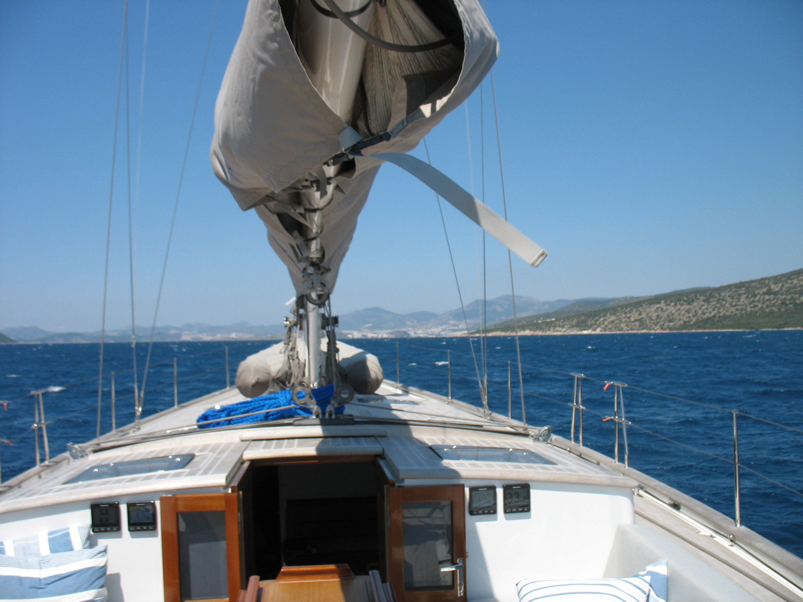 До марини пройшли швидко за вітром відстань 12 миль. Поставили спінакер, доволі легко, що значить вітер попутний. Швидкість збільшилачь вілсотків на 20.