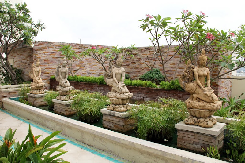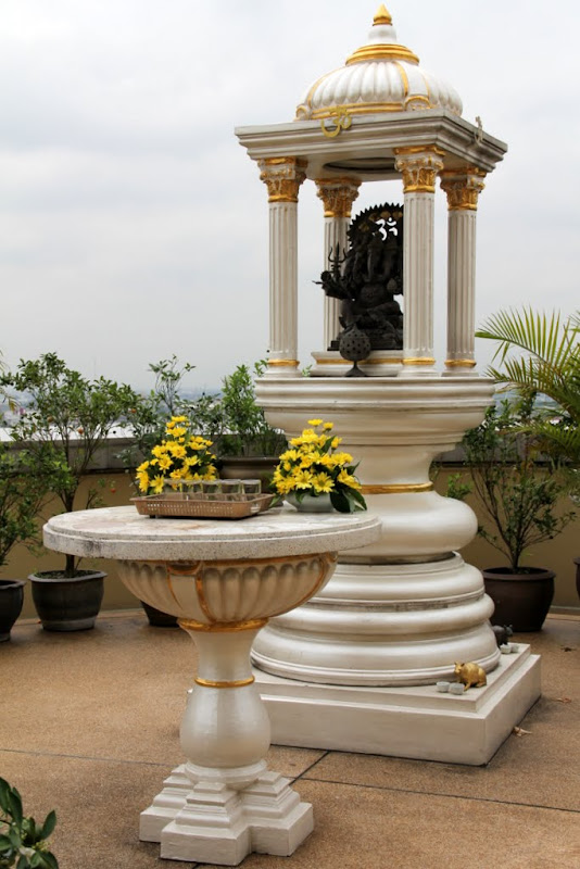 После храма мы отправились в отель отдохнуть у бассейна (и высушить мокрую насквозь футболку) перед трансфером в аэропорт. Пока сохла футболка, я с фотиком прошвырнулся по аллейке каких-то лиан со свисающими до пола воздушными корнями (все это на 11м этаже, на крыше) и обнаружил часовенку Ганеше, только почему-то тут у него было 5 голов..
