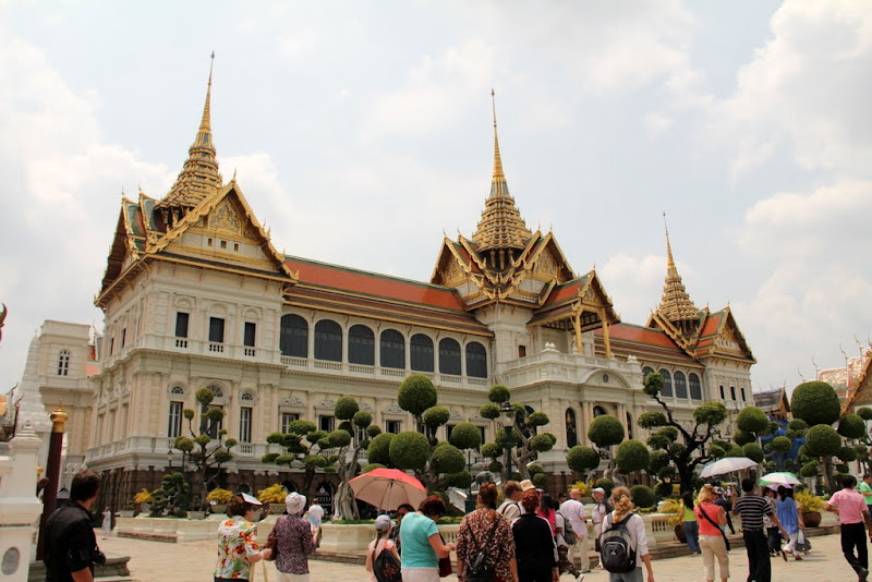 Потом повели смотреть собственно Королевский Дворец. Ракурса чтобы сфотать здание целиком я не нашел, широкоугольника у меня тоже не было, увы... В этом здании Король не живет, а только "принимает гостей". Живет от в отдельном райончике Бангкока, обнесенном невысокой стеной и похожем скорее на парк...