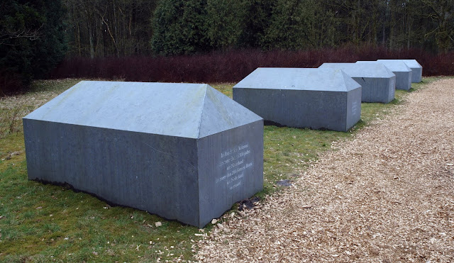 (Надписи на камнях: "в ... было убито ххх евреев и цыган из Голландии")