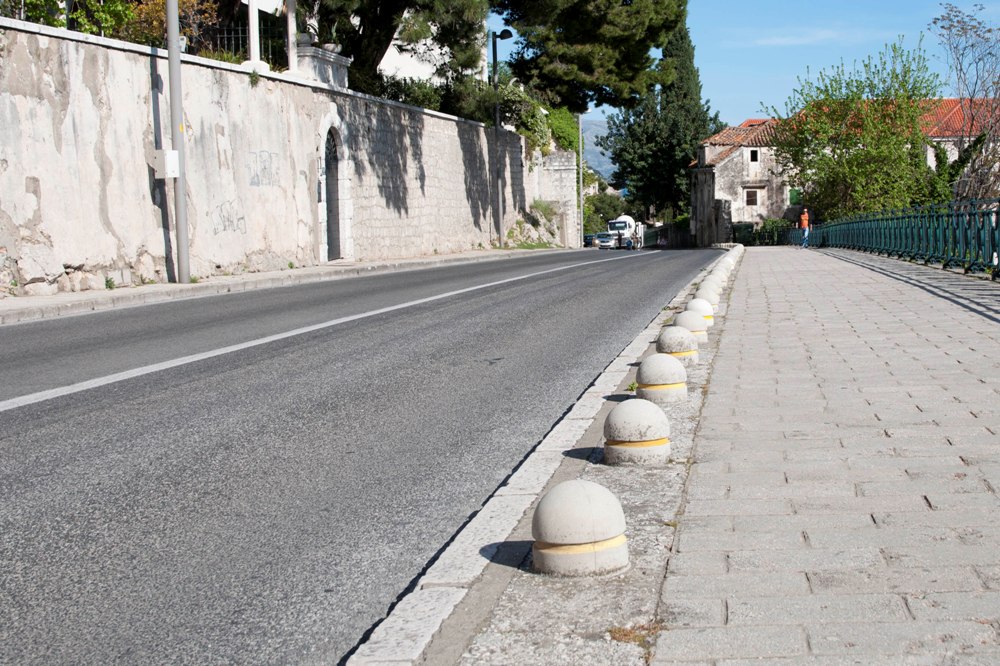 Узкая улочка в Старый Город, широкая часть справа - не совсем тротуар. Это - смотровая площадка. И очень грамотно она защищена от парковки. :)