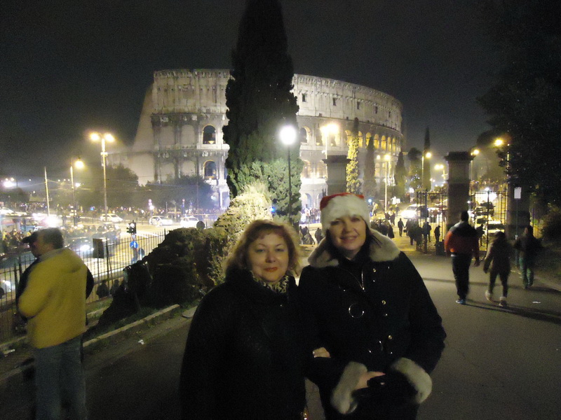 После поселения мы чудесно поужинали и стали готовиться к встрече Нового года. Решено было делать это у Колизея, с шампанским, бенгальскими огнями и хлопушками, в лучших традициях местного неселения. Все прошло хорошо. Арабское и афро-американское население вело себя в рамках. Фейерверк был красивым, а мы довольны. От себя хочу добавить, что я как-то встречала новый год у Эйфелевой башни, так то было кошмаром и ужасом. Рим получил и в этом пункте одно дополнительное очко, по сравнению с Парижем, но повторюсь, это лично мое мнение.