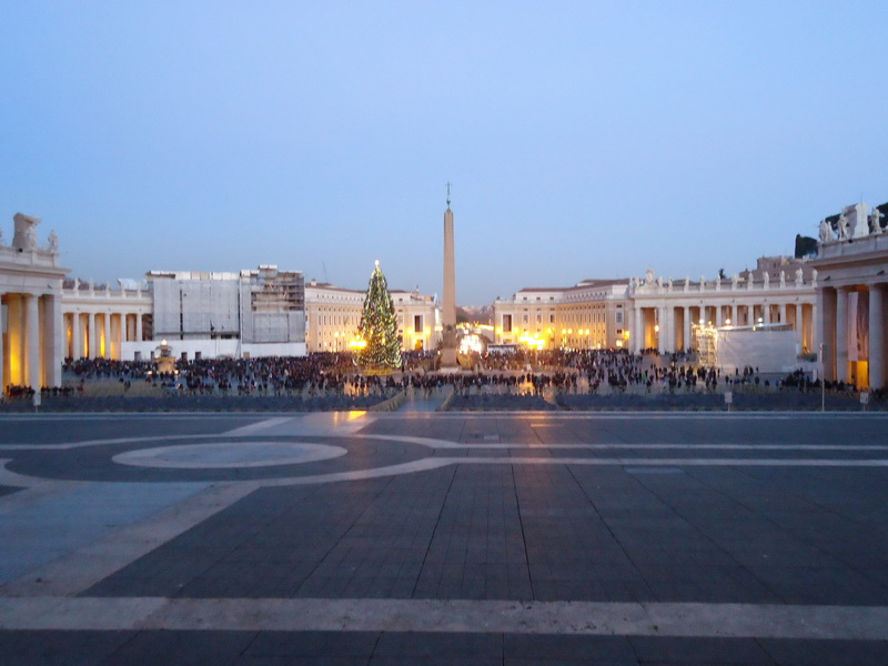 ) и может по-этому ничто не омрачило наше пребывание в вечном городе. Не хотелось начинать отчет со слов "Рим запомнился мне убытками в Х ЕВРО.....". Осмотрев все с одной стороны, мы перешли через Тибр и направились к собору св.Петра. Прийдя на площадь и увидев очередь на вход, даже как-то растерялись. По нашим подсчетам стоять надо часа 3. Но не знала эта очередь наших способностей. Решение было принято молниеносно и без возражений. Мы вклинились в очередь прямо у турникета перед рамками безопасности, махая руками кому-то якобы ждущему нас впереди.....стыдно, каюсь, но во внутрь мы попали через 5-7 мин. и погрузились в величие этого Храма. Всем, кто не был, рекомендую посмотреть фильм в интернете. Очень интересно.