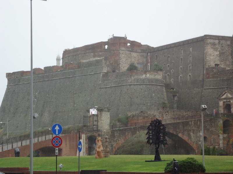 Хочу отметить, что у каждого магазинчика выставлена корзина для зонтов, жаль фотка вышла размытая, и каждый входящий в магазин не заморачивается и не капает внутри. Просто и удобно. Гуляя по городу, мы забрели в Храм, не очень большой, типа усыпальницы, посмотрели окрестности. По дороге к судну осмотрели местную архитектуру, крепость и зашли на рынок! Макароны, спагетти, и еще куча всякого макаронного перекочевало к нам от торговцев. Владик погулял по сырам. Леня рюкзаком зацепил винный ряд.......падало сразу 3 бутылки, одну я успела поймать в воздухе, одна удачно приземлилась, одна разлетелась вдребезги. Посмотрев цены, мы честно стали ждать продавца. Он появился с веником и совком и предложил уйти нам с глаз долой, отказавшись от денег. Вот такие они, итальянцы! С того момента, Леня регулярно слышал от меня "Леня, рюкзак!"
