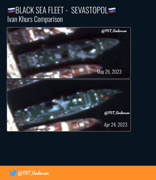 Дотягли Хурса до Севастополя. Ета пабєда :mrgreen: Супутникові знімки показують, що він сильно накренився на правий борт, щоб діркою в лівому не черпати воду.