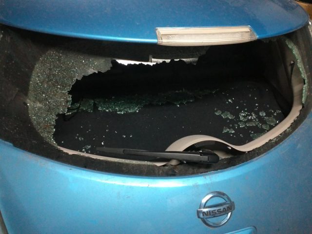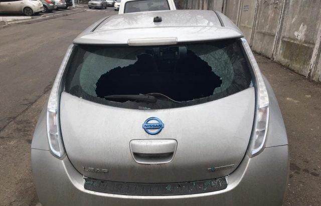 У обоих Ниссан Лиф разбито именно заднее стекло, то есть грабители пытались попасть не в салон, а в багажник.