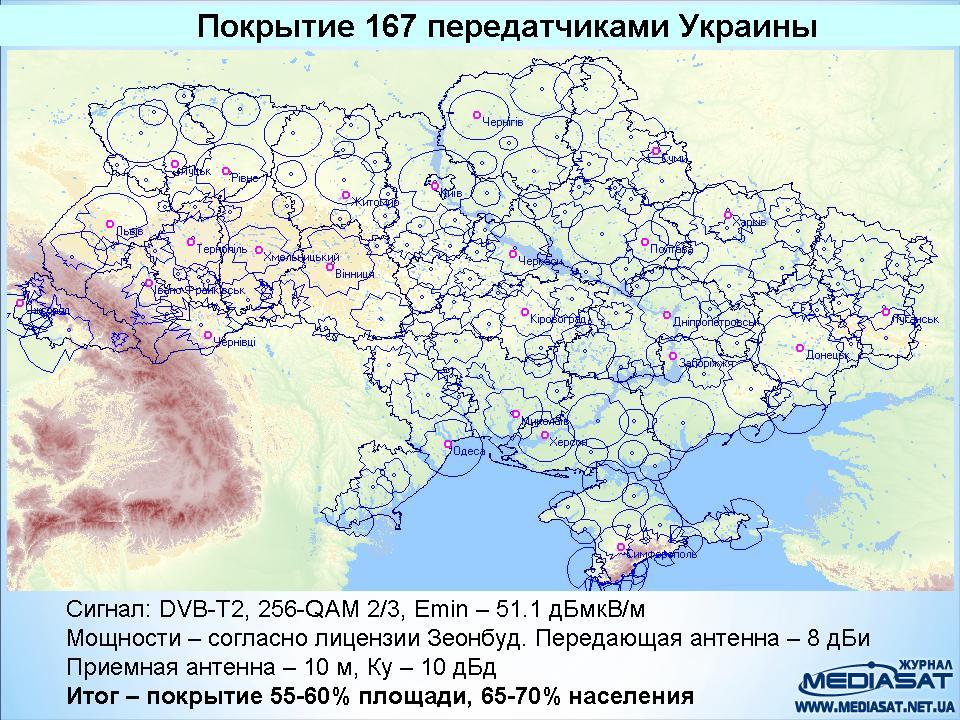 Случайно наткнулся на более менее реальную карту покрытия DVB T2 на Украине, вспомнил наш разговор: