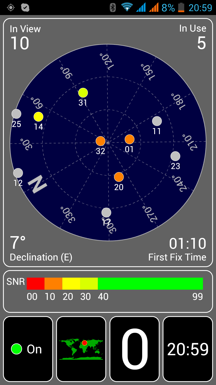 Вот. А точность позиционирования никогда за всё время тестов в машине не была больше 8 метров. Как правило - 3-5 метров.