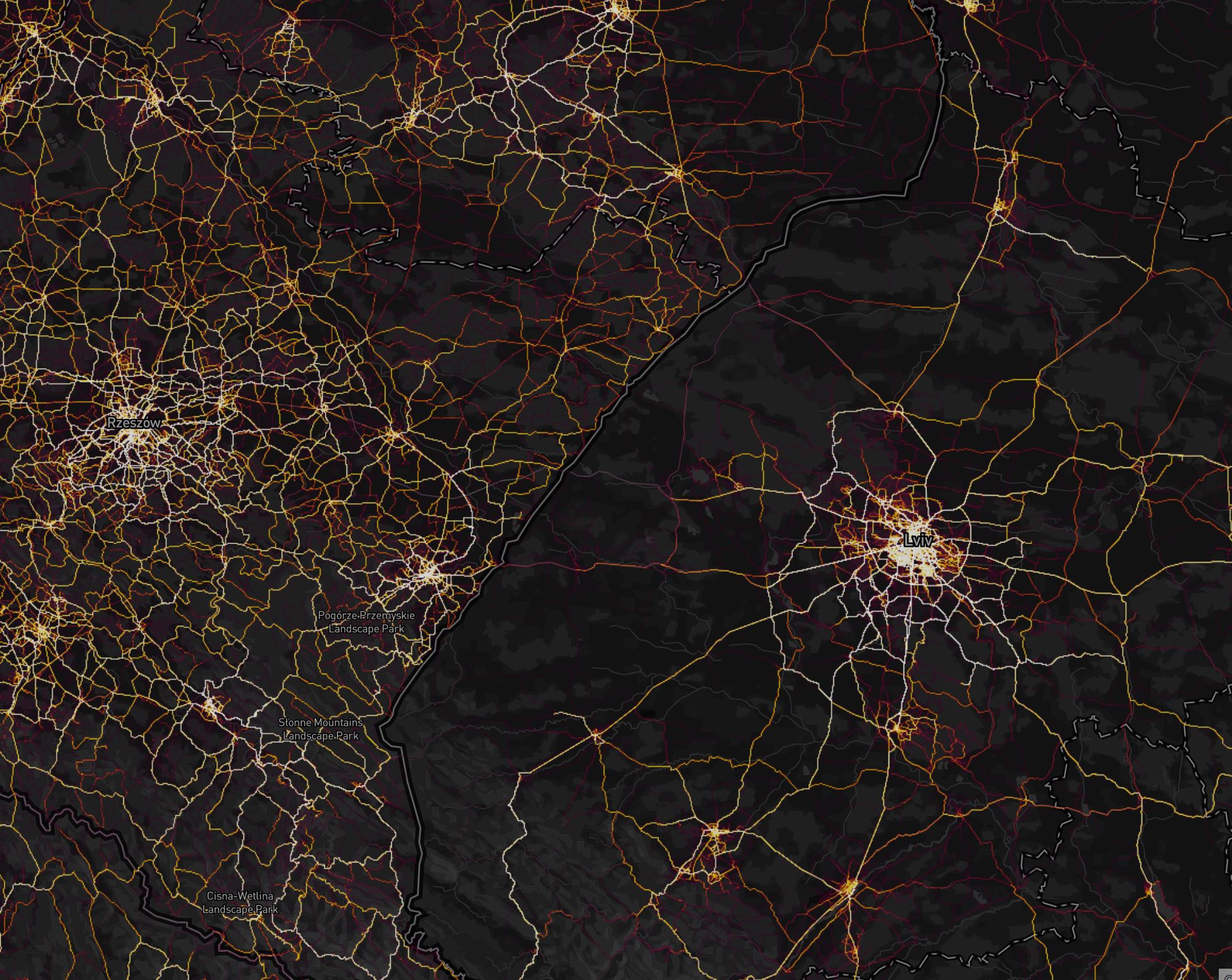Украина vs Польша, интересная картина на strava global heatmap: