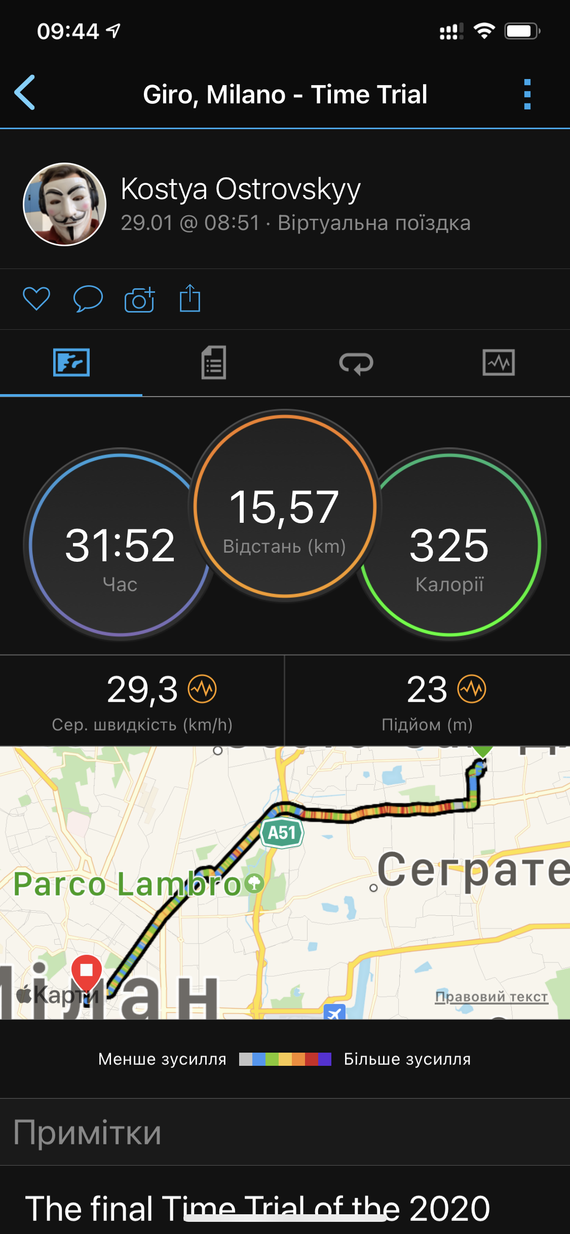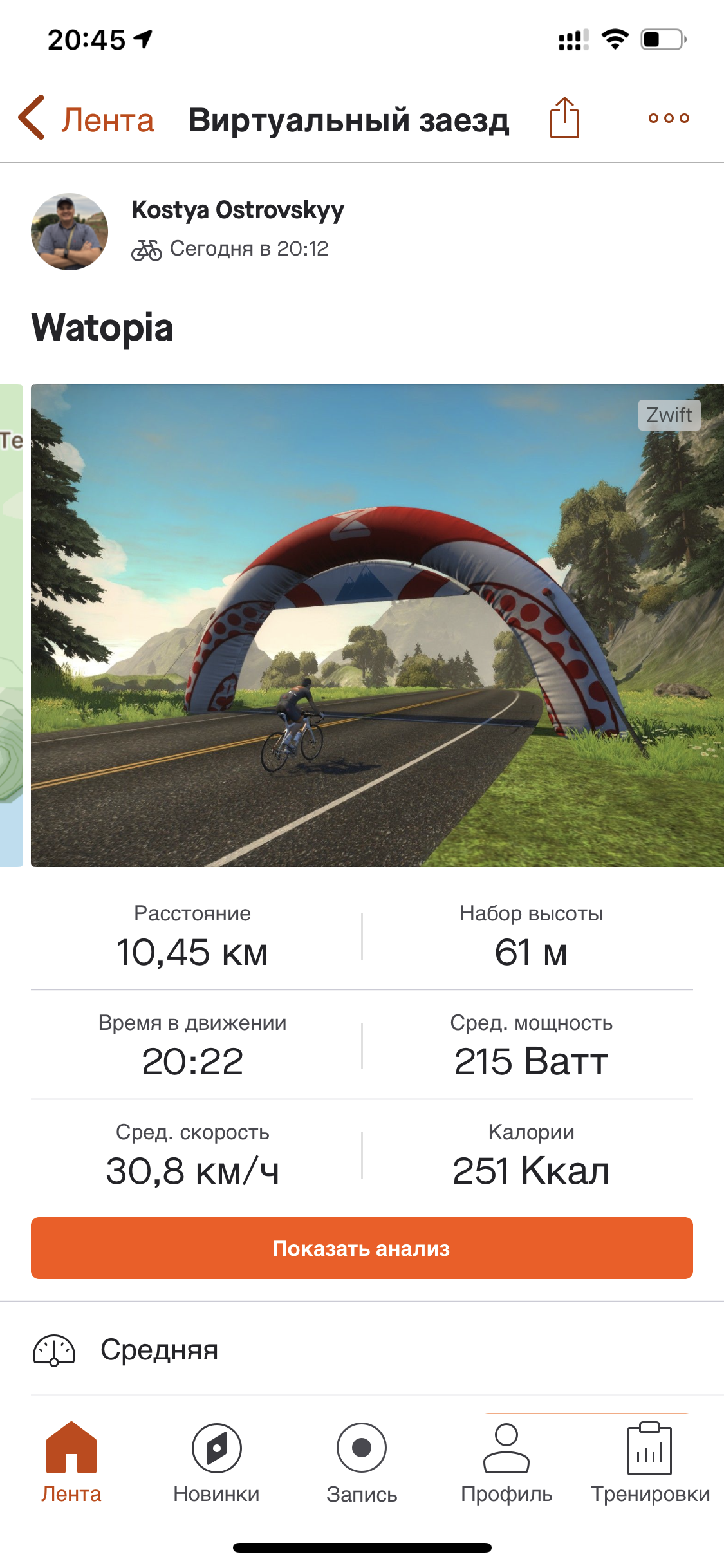 Проехался в Zwift. Поинтереснее. Сам станок не так резко градиенты притормаживает, а следовательно - ехать покомфортнее. Повеселее видеть других на дороге, получать ачивки. Мотивирует. Ну и риск постоянно понаваливать. Я пока в обучении. Нужно проехать 25 км, чтоб дали месяц бесплатный и открыли локации, кроме Ватопии. Очень интерактивно. Постоянно всплывают инструкции. Постоянно на процессе сосредоточен. И еще плюс: поставил на appleTV ее, на телике 49’’ классно ехать.
