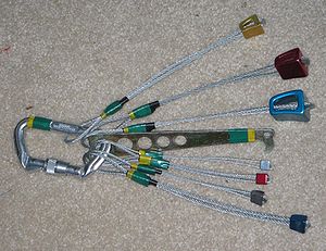 Если сверху зафиксировать веревку нельзя, то скалолаз лезет с нижней страховкой, используя временные точки страховки - закладки, френды или камалоты - особые приспособления, которые вставляются в щели в камне и фексируются там. И повисая на временных точках страховки вбивает шлямбура. Вот хорошая