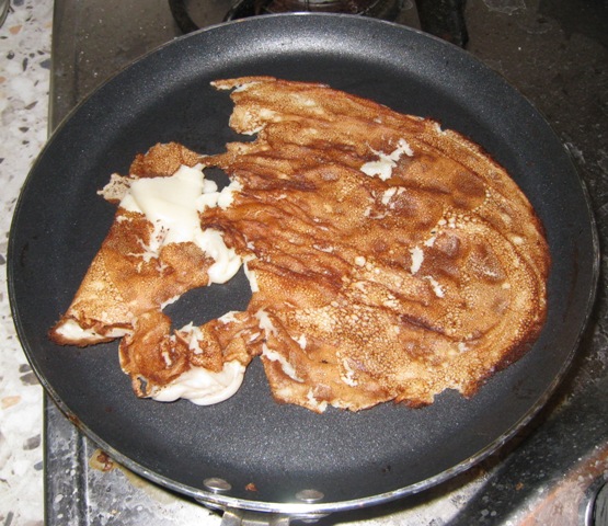 Если же и после этого блины комом - значит в наличии причина номар два: жидкое тесто. Для устранения этой причины нужно сделать тесто более густым. Для этого нужно добавить муки и тщательно всё перемешать!