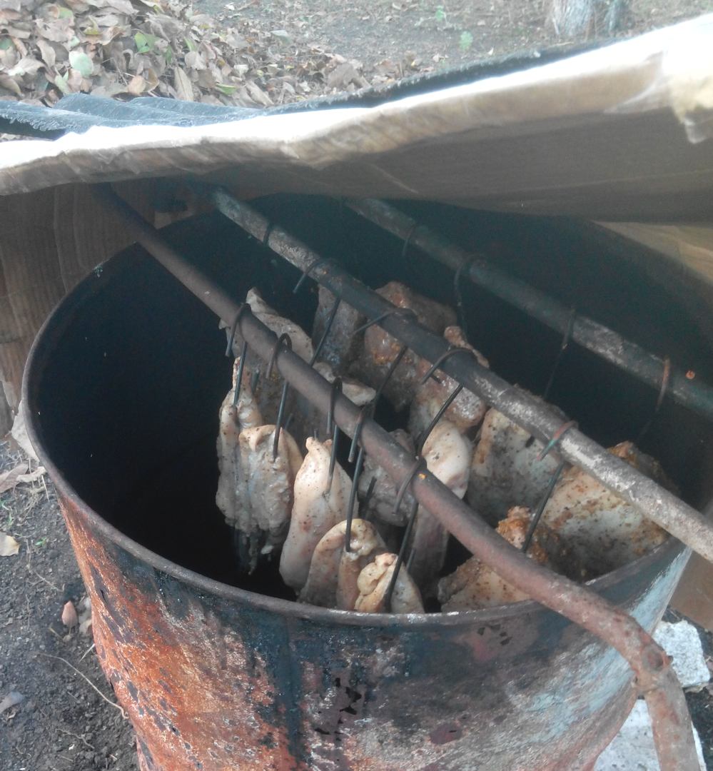 Результатом все родственники довольны. Немного перебрал с солью в маринаде. Но куриные филешки получились как раз соленые и хрустящие к пиву. А остальное мясо взяло соли столько, сколько нужно.