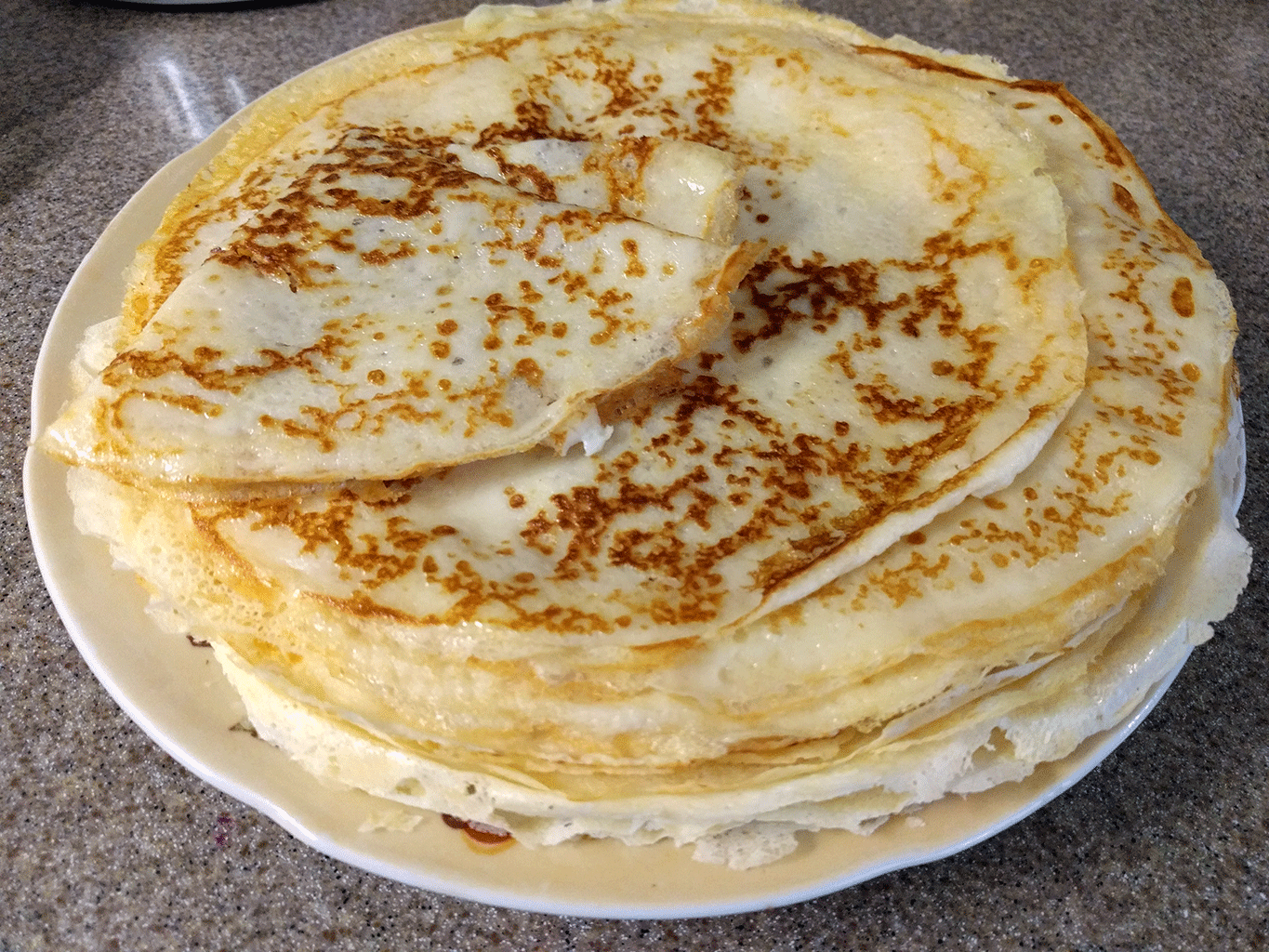 Сегодня опять на хозяйстве с мелким. Мелкий захотел блинов с творогом. Вот, стою жарю. А он ест. Чтоб было быстрее, жарю на 3 сковородках. Ему персональные - "детские" (на маленькой сковородке), не такие зажаренные как эти. Сделал ему налисников. Отдохну пока это пишу, пойду дожаривать вторую половину, остальное семейство кормить. Вечером сделаю блины с ветчиной, жаренным яйцом, грибами и сыром. Старший такое любит. Да и я тоже..