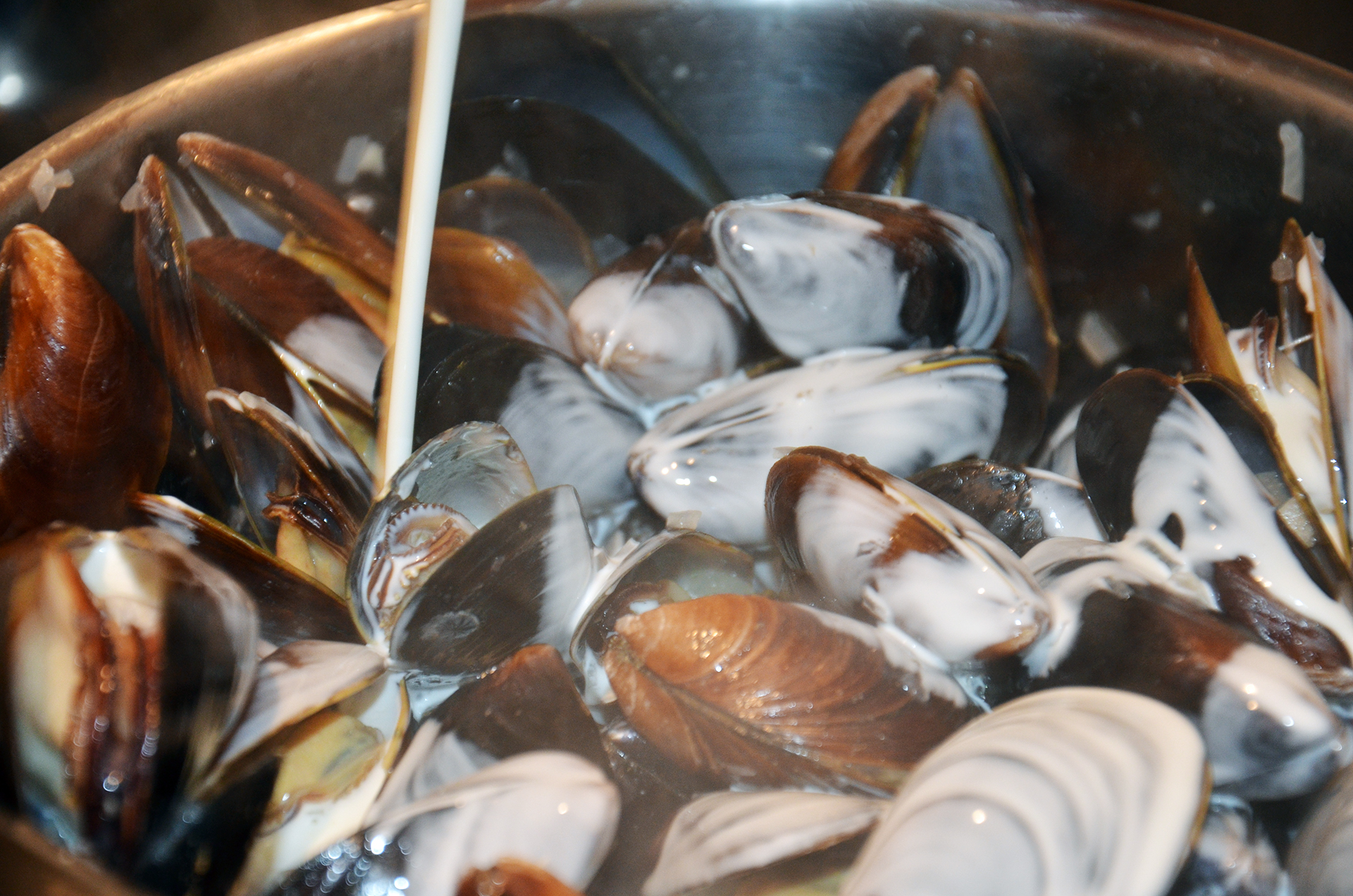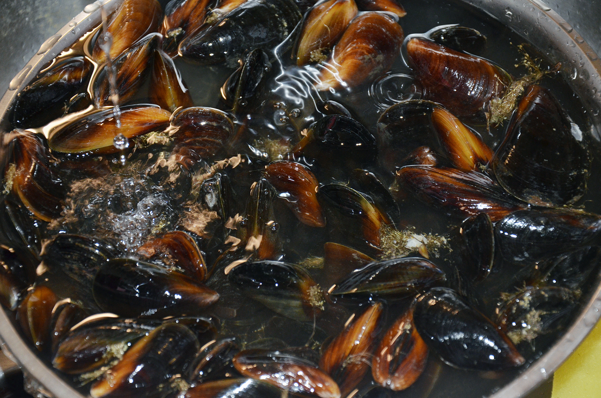 Провариваем 3-5 минут. Перемешиваем. В конце мидии через сито можно процедить и "соус" немного больше проварить на большом огне, чтоб он выпарился. Учитывая, что в Киеве кг мидий можно купить за 60 грн, наслаждаемся..