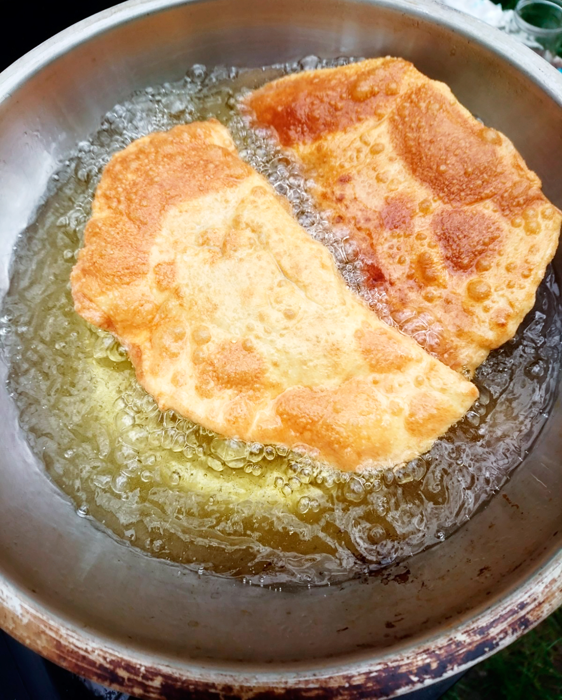 Дача - хорошее место, чтоб пожарить чебуреки.. Оборудовал себе рабочее место на улице, никакого запаха в доме.. А кушать чебуреки на свежем воздухе - это особенный кайф. Как в детстве.. Керчь, свежий морской воздух, ты на вокзале с мамой и сестрой, тебе 6 лет, ты первый раз в этом городе, ехал целый день в поезде на верхней полке!, стоишь, счастливый и пробуешь свой первый жизни чебурек, приготовленный тебе необычным, но очень приветливым к тебе человеком другой национальности, со странным названием, которое ты раньше встречал только в книжках - "татары"... Радость. Восторг от Путешествия и новых незабываемых впечатлений. И сочный вкусный чебурек, вкус которого с тобой останется до конца твоей жизни..