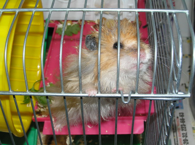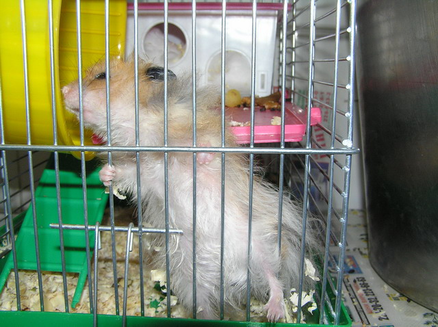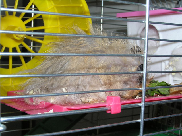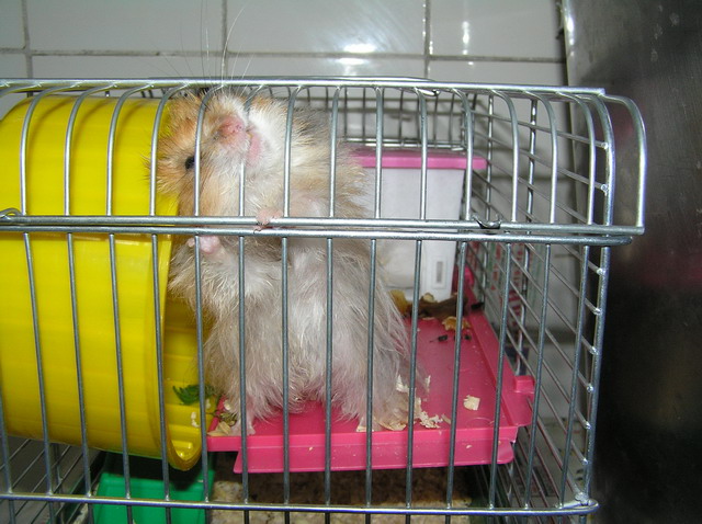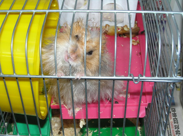 Наш хомячило продолжает вести исключительно нехомячий образ жизни - ест мясо и курятину, выбрасывает непонравившуюся ему еду из клетки на пол, даёт лапу, на фразу "иди в будку" реагирует правильно - идет и прячется в своём домике. Недавно пил пиво. После этого медитировал (сидел посреди клетки и раскачивался из стороны в сторону). Потом валялся по клетке как тряпочка, отсыпался. Потом его с бодуна на хавчик пробило - тряс клетку, требуя еды, согласился на жаренную свинину. При появлении кого-то из нас рядом с клеткой выскакивает из домика и просится поиграться. Думаем: это у нас какая-то особая порода хомяков или с экологией что-то невпорядке?