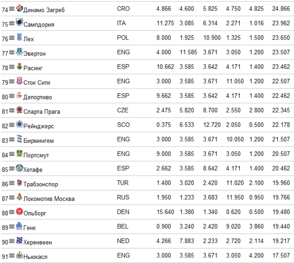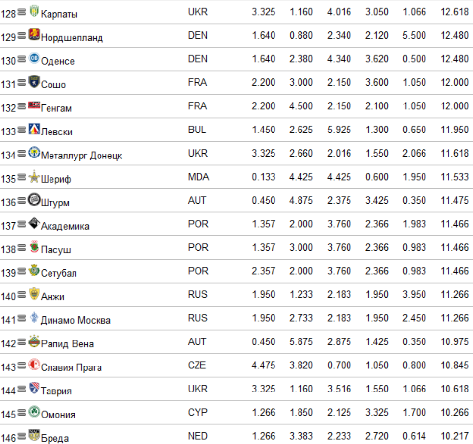 Поправочка - Металл на 28 месте - опередил Твенте.