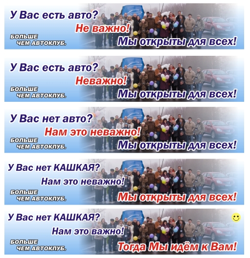 например, можно подумать, как анимировать переростание фотки кашака (2-я картинка слева) в лого кашкай-клюба (1-я картинка справа)