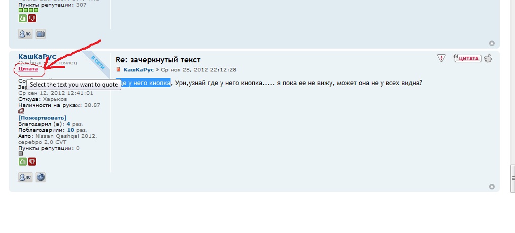 Тоді просто копіюй текст, в полі для вводу став курсор і тисни Quote. Між середніми дужками пейсті той текст, що копіював. І буде тобі щастя. Це - 2-й варіант! :wink: