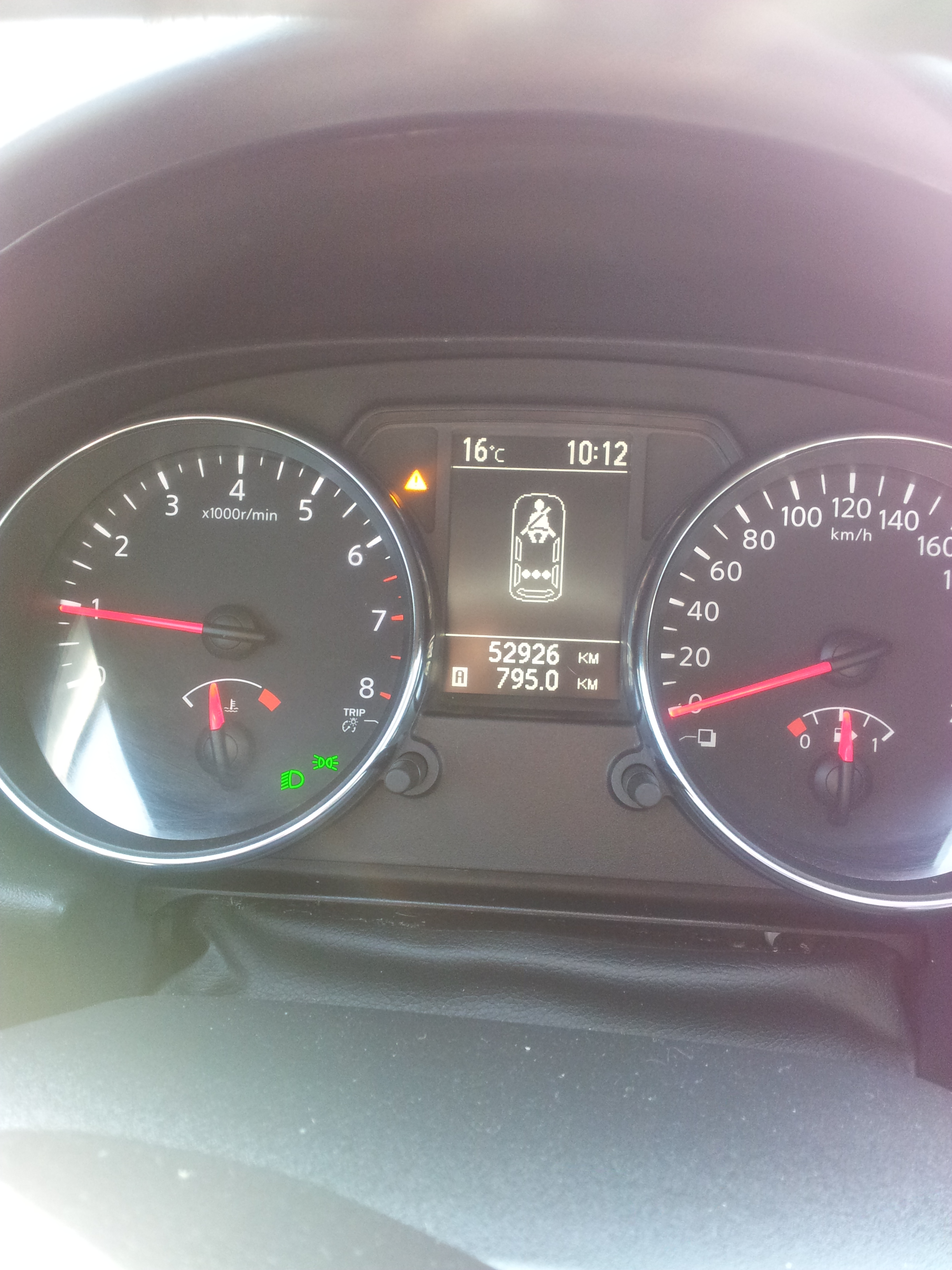В даному випадку центральний екран показує що не пристібнуті задні пасажири. Так як ззаду є тільки датчики ременів, а датчиків наявності пасажирів нема, то воно засвічується завжди, якщо хоча б один із задніх ременів не пристібнутий (крапочки показують які саме ремені не пристебнуті).