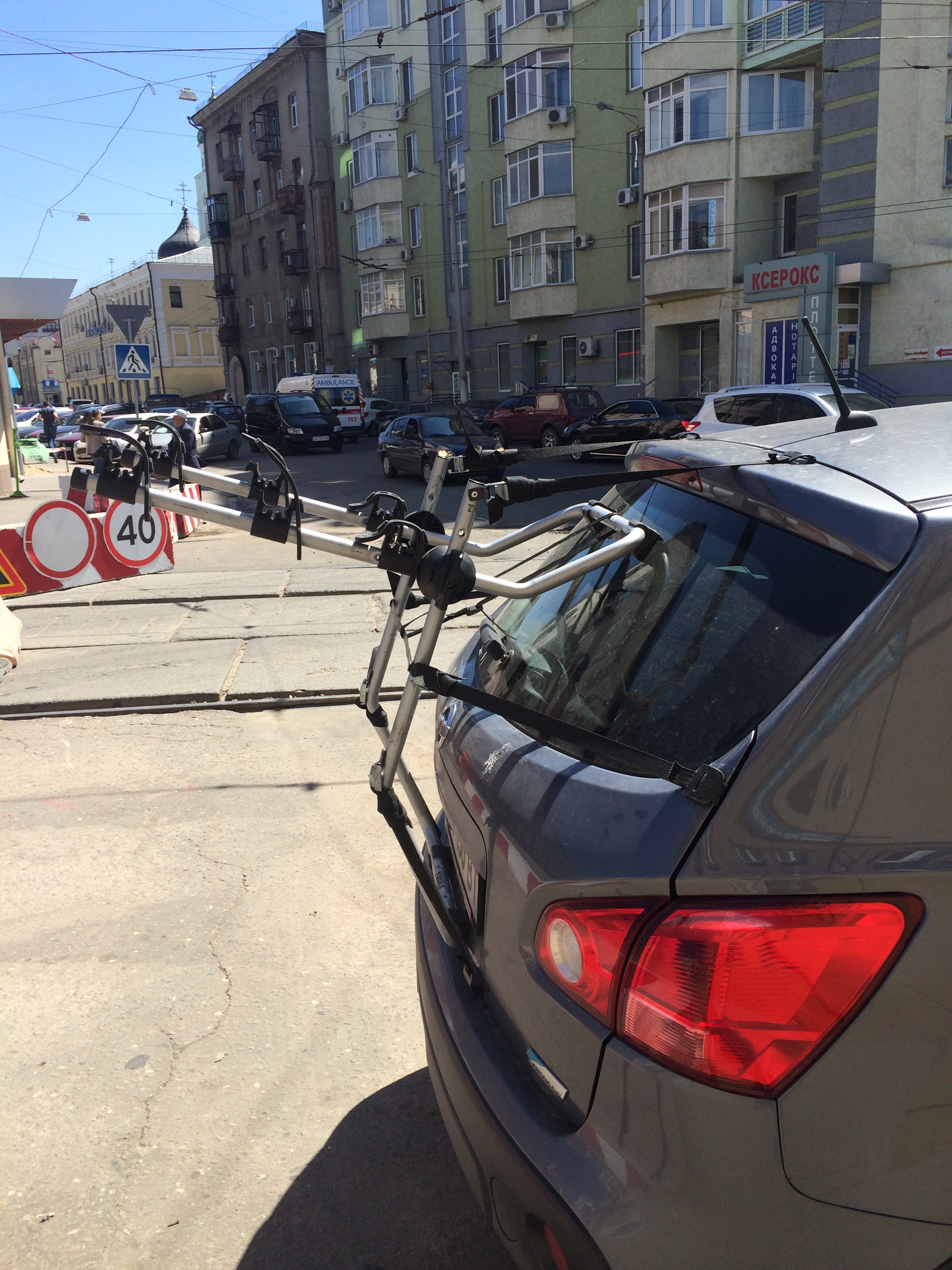 Нашел в Харькове магазин который дает багажники на прокат. Вернее декларируют многие, а реально крепление для перевозки велосипедов на задней двери, предоставили только в одном. Все удовольствие 30грн/сутки.